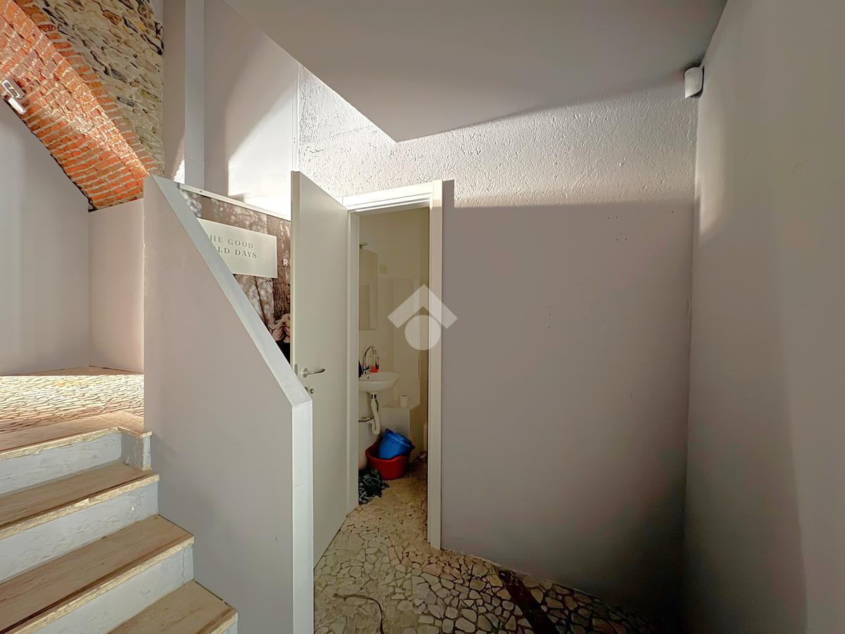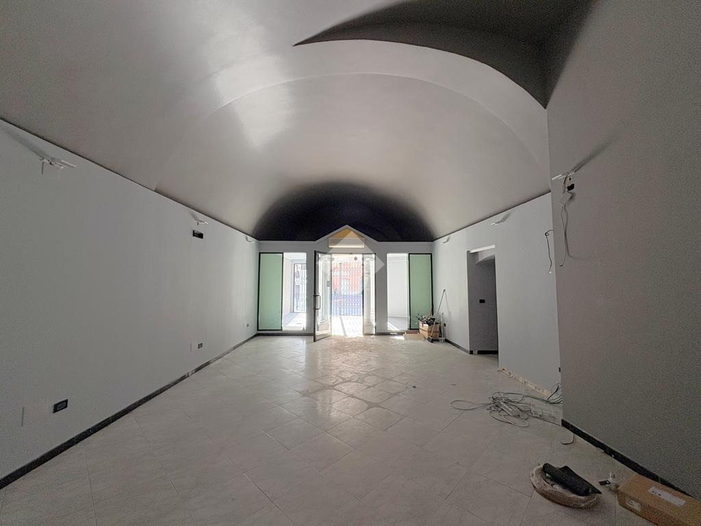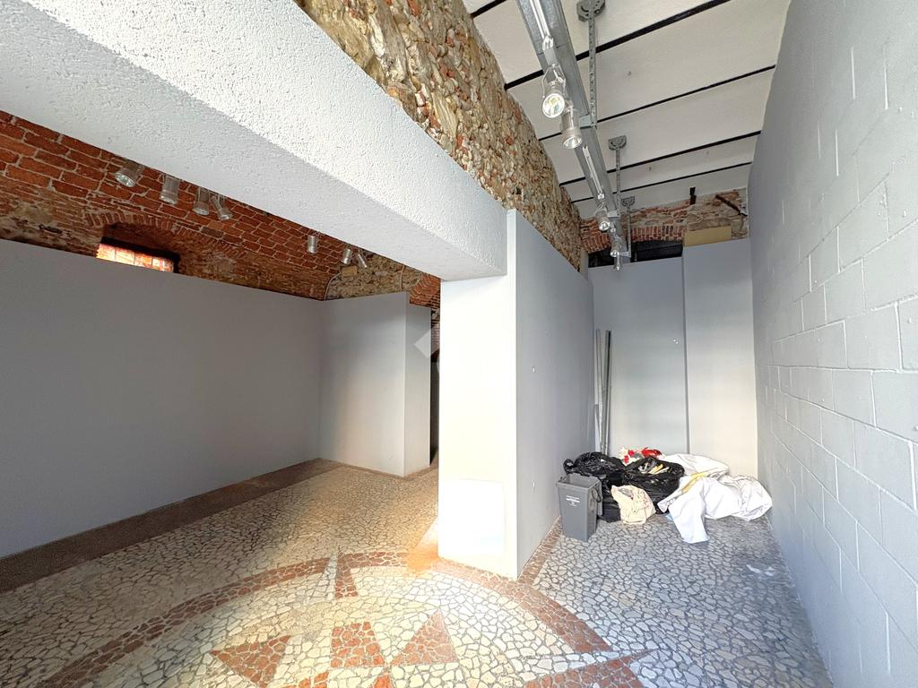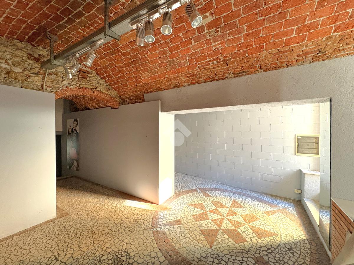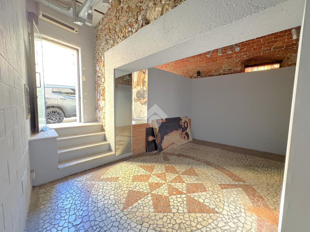 L'immobile è composto da due spaziosi locali collegati da un corridoio centrale e si distingue per le finiture curate, con soffitti a mattoncini a vista, illuminazione a faretti e un pavimento a mosaico di pregio. È presente un servizio igienico e un comodo vano coperto ideale come archivio o piccolo magazzino, collegato direttamente all'open space principale.